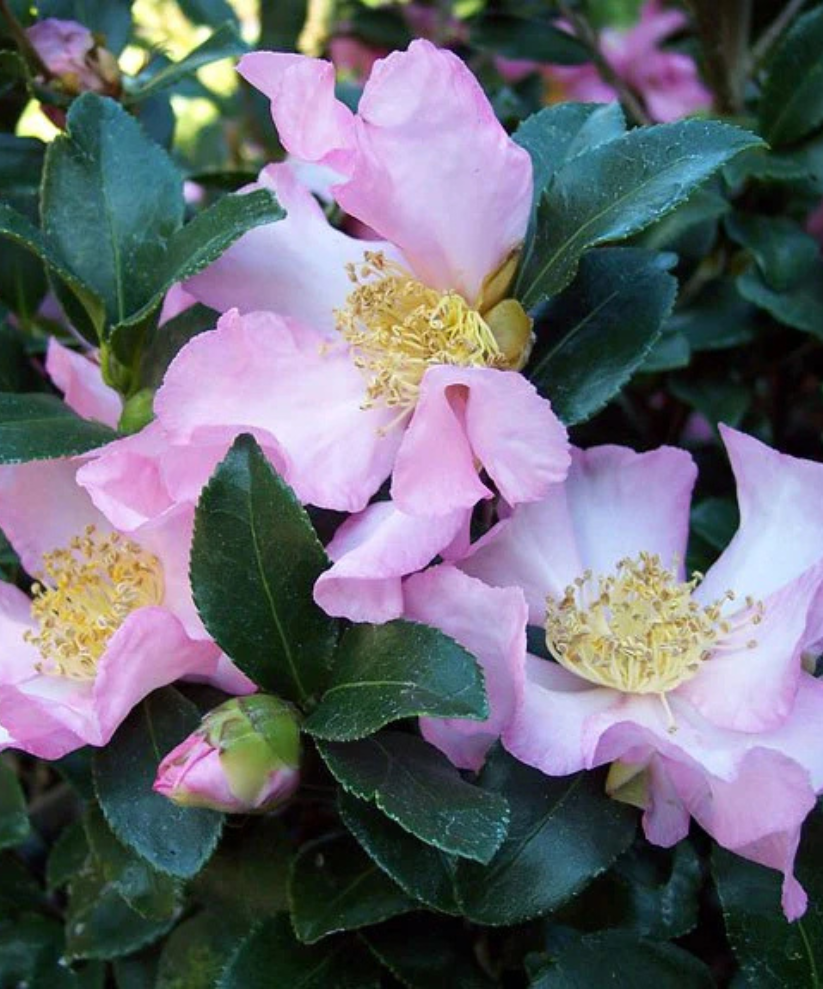 Designing your space with shrubs is all about creating a backyard that feels layered, lively, and welcoming. Native plants mixed with evergreen shrubs give your garden depth, while fast-growing varieties quickly create a lush green screen for both privacy and charm. Larger shrubs bring structure and anchor your landscape, while smaller bush varieties define pathways, soften edges, and guide the eye toward your favorite features. For standout color, flowering shrubs, like Camellia x Vernalis ‘Yuletide’, fill the winter months with beautiful blooms. Many native options even produce berries or fruit, attracting pollinators and wildlife. Whether your space gets full sun, partial shade, or something in between, there’s a shrub that will thrive, adding warmth, movement, and natural artistry to your backyard.