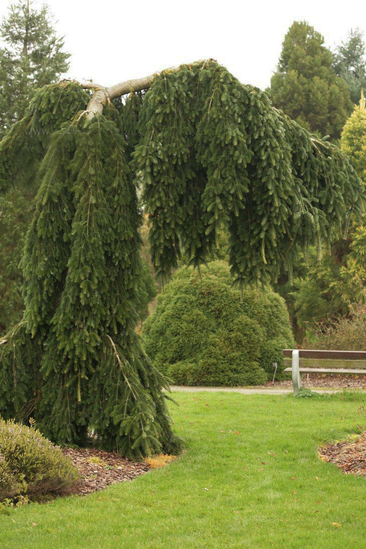 This larger growing fir is another candidate for the famous 'Cousin-it' award. The tree grows vertical with all branches hanging strictly down. Over time it can develop into quite an unusual shape, Could be trained over an archway for a transition between garden rooms. The bright green needles are soft to the touch, becoming darker with age. This tree is hardy to -30 deg F, or zone 4, and will be 8 ft tall and 3 ft wide in 10 years if staked.