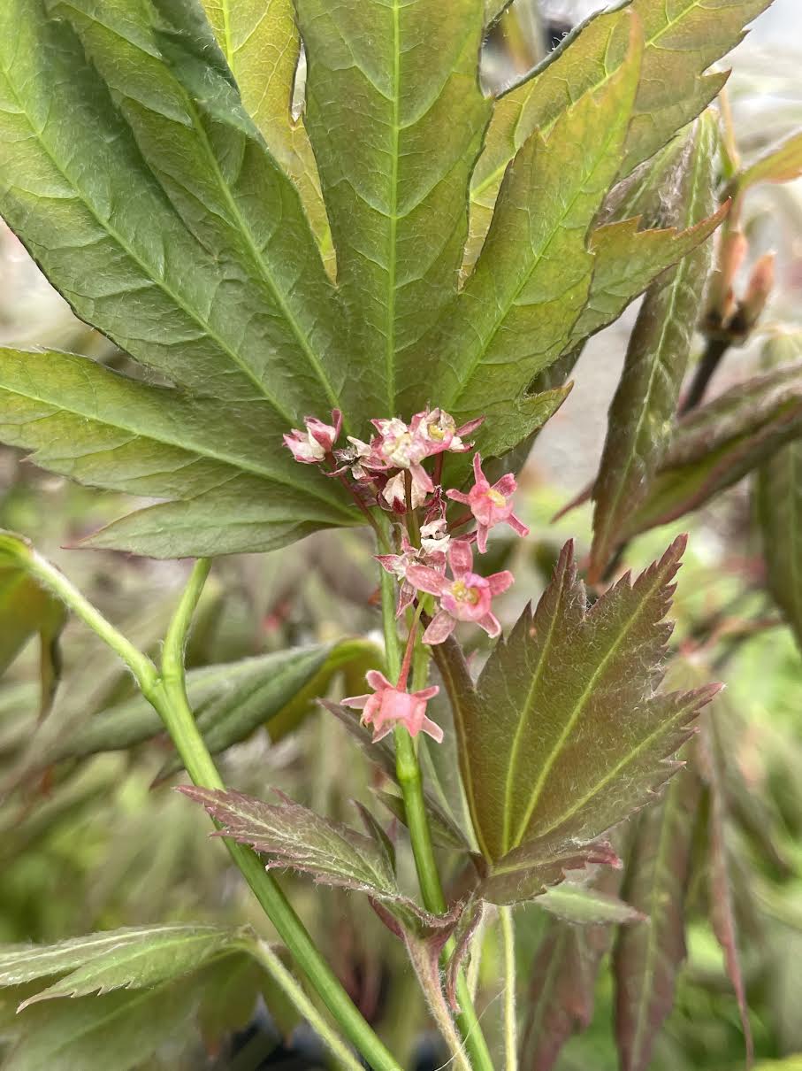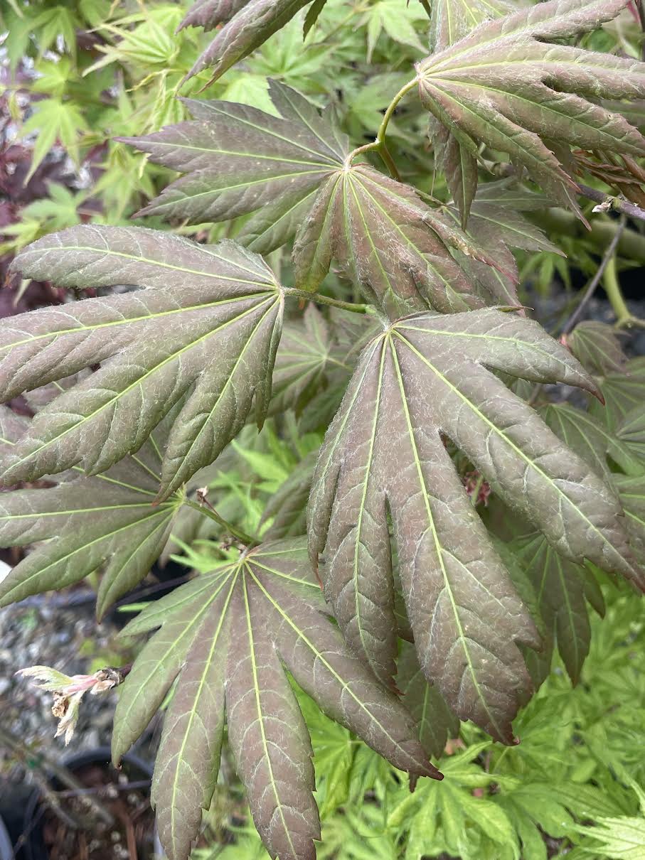 Found by Tera Nova Nursery in Oregon, this interesting Japanese Maple has the look of a 'orange wash' on the leaves all summer long. Then in autumn, the foliage turns bright red,orange, and yellow. What a show that lasts and lasts! The tree will grow to 12 ft tall in 10 years,