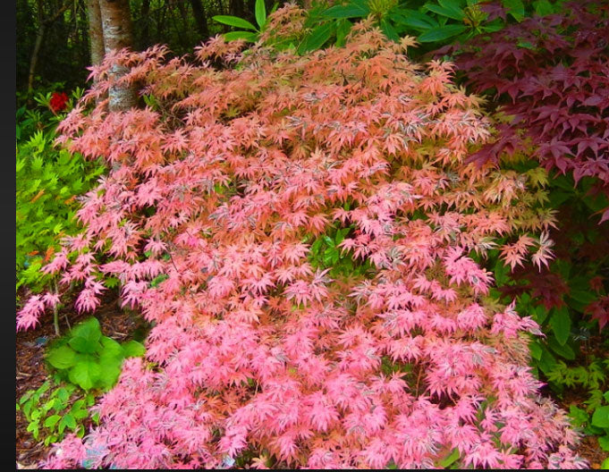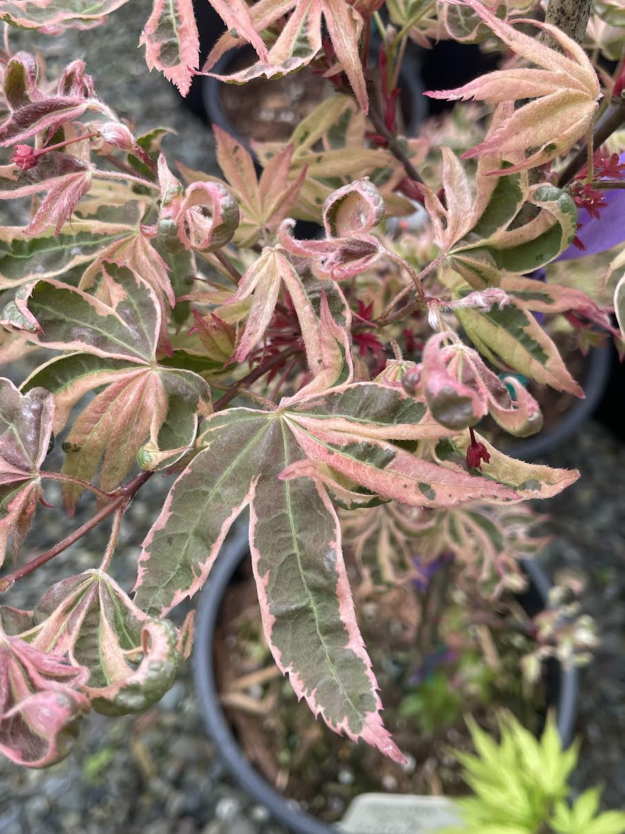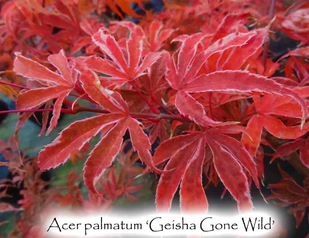 We were looking for A.p. 'Geisha' so we could see how 'wild' she got. We found 'Geisha' in New Zealand to be a pretty pink foliaged cultivar. The 'Gone Wild' version is definately more exciting! It is a small, upright tree the pink leaves having a distinct cream along the edges. Very showy! The tree will grow to 8 ft tall and 5 - 6 ft wide in 10 years. Rare and unusual. Found by Buchholz & Buchholz nursery in Oregon. Hardy to zone 5.