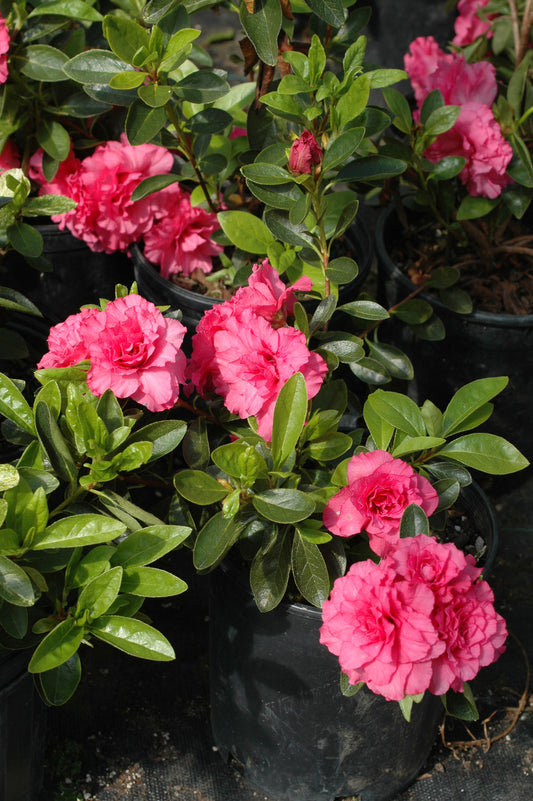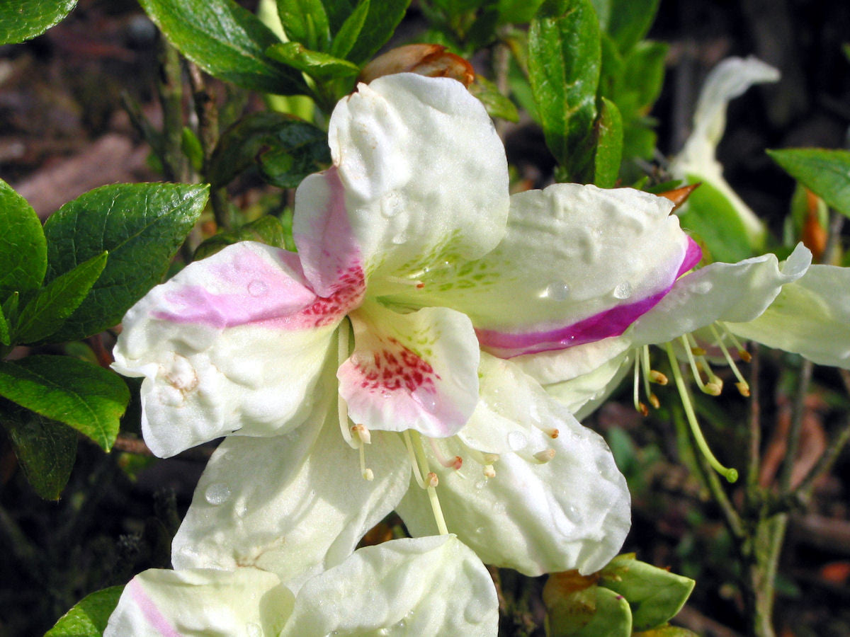 A wonderful Satsuki hybrid that stays low. Interesting...the flowers will be white, pink, or a combination of white and pink, like several azaleas grouped together. Fun!