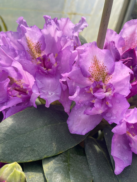 This 'ironclad' rhododendron is very tough. Forming a dense mounded shrub, the foliage is always very dark green. This plant will survive with very low maintenence. Can take more heat as well. Because it holds its foliage for more than 2 years, the plant always is full and bushy. The leaves are immaculate and attractive all year long. Can grow in full sun or partial shade. Hardy to zone 6. We recommend this plant to any novice gardeners, beginning rhody lovers or landscapers who want to look good with minimal effort;)