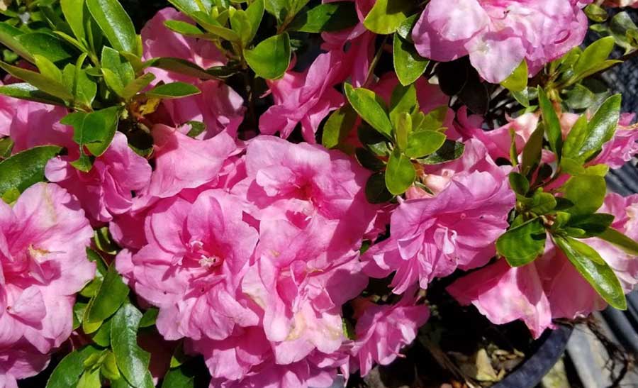 This soft pink flowering evergreen azalea is quite a show in early to mid-spring, often smothering the foliage for a few weeks. The plant is thought to have come from Holland, and is a hybrid between Kurume and Belgian Indian hybrids. The plant is quite hardy, to 5 degrees F.