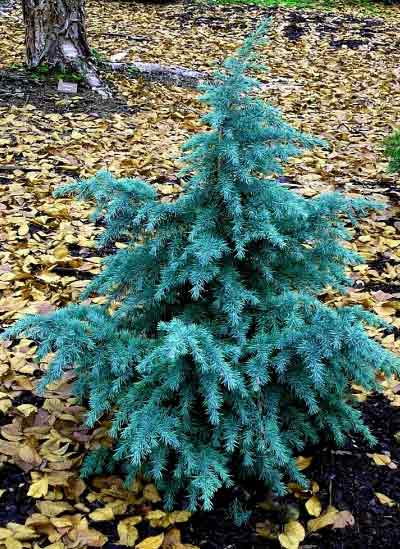 Are you looking for a small, pyramidal blue-green evergreen tree? This Himalayan Cedar will be 8 feet tall and 5 feet wide in 10 years, and is hardy to -20 degrees F. The short needles are an intense glittering-blue color, making it a great contrast plant to other colors like gold or red. Plant with red Japanese maples or bright gold conifers like Thuja o. 'Rheingold' for a great look.