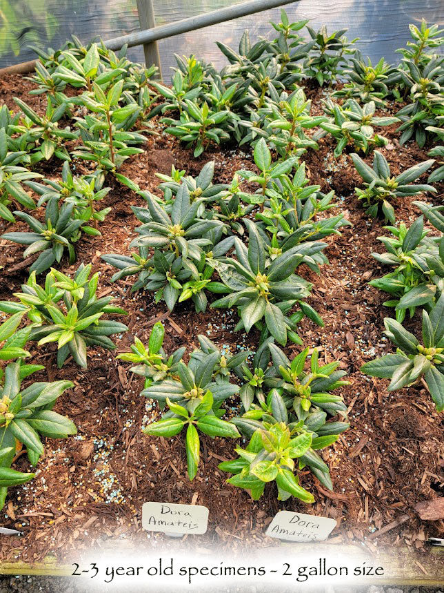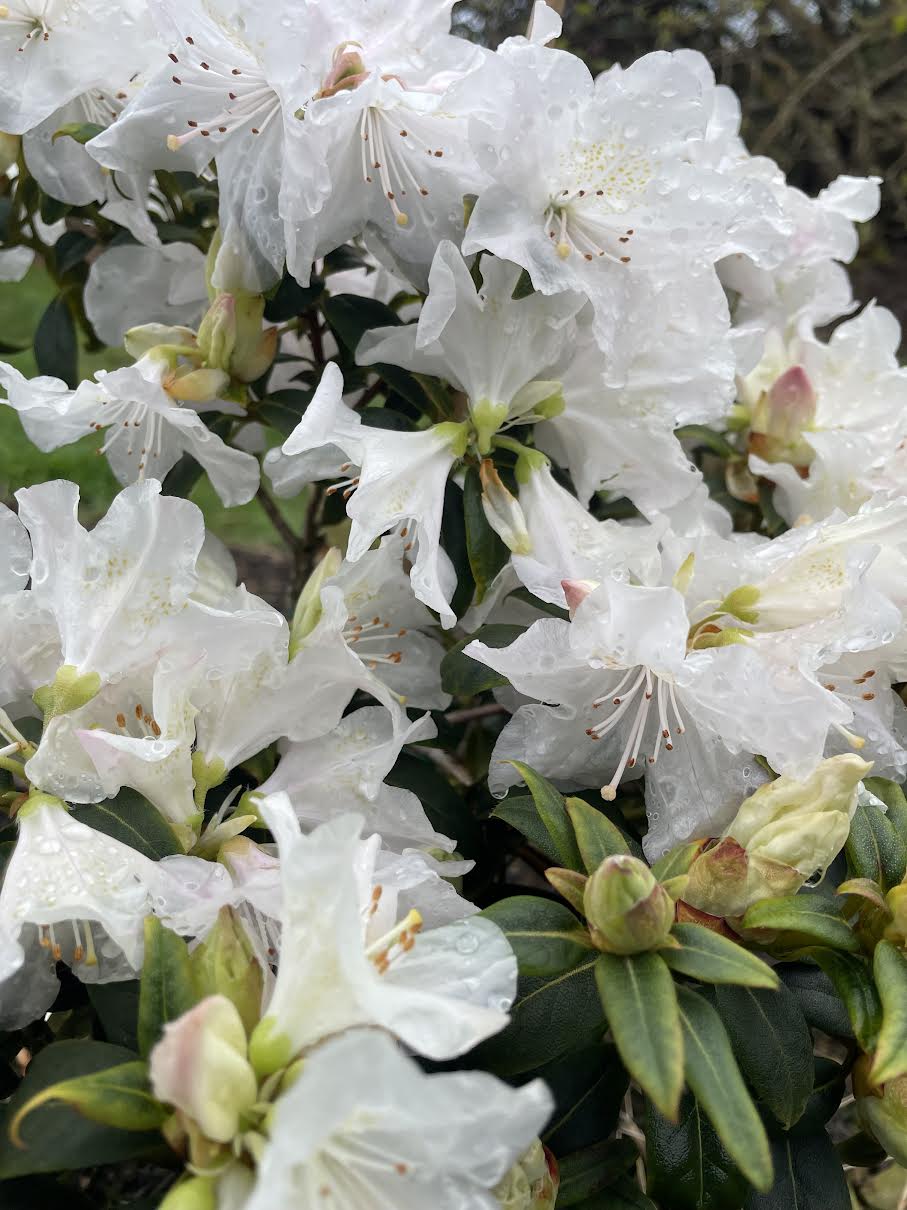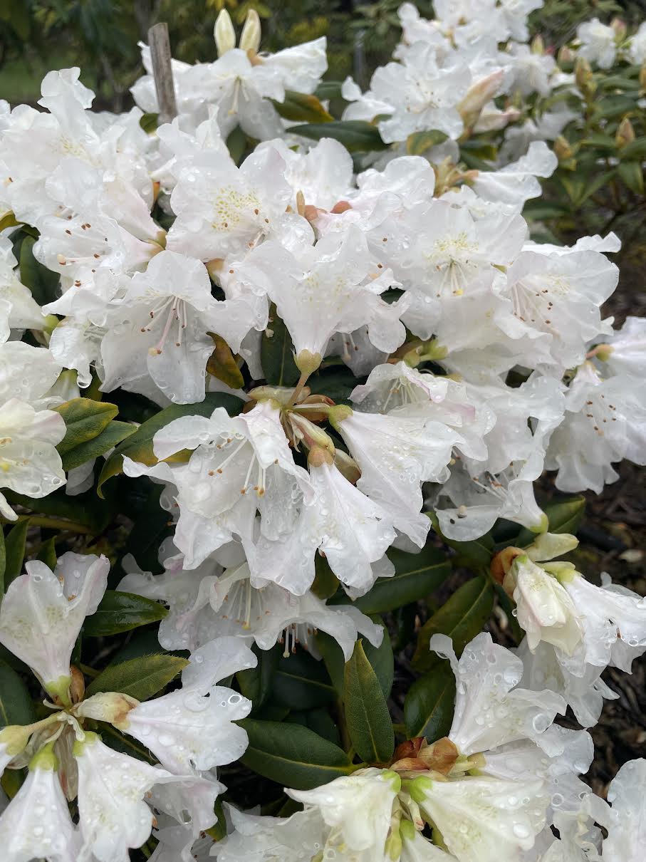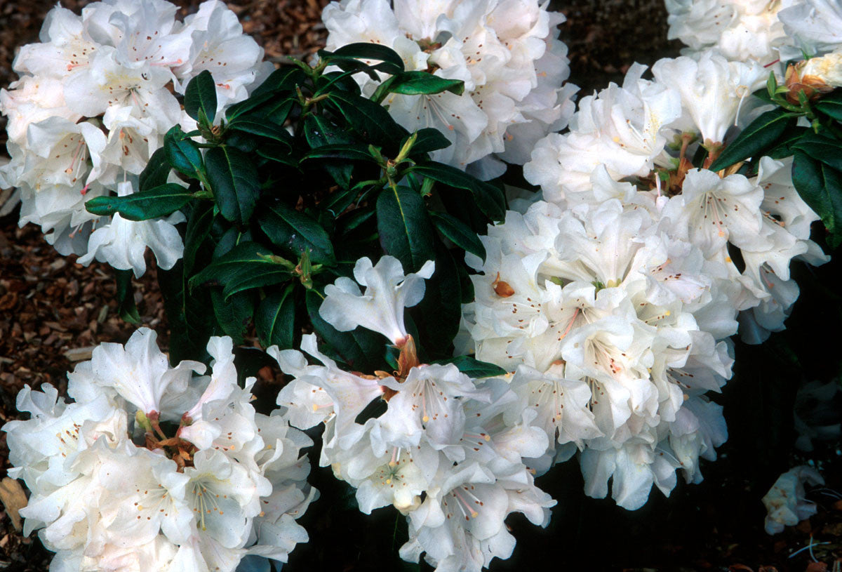 A low growing shrub that will grow 2-3 ft. in ten years. This plant blooms so profusely that the foliage completely disappears. It resembles an azalea and is great in mass plantings. It blooms in late April. If you are looking for a very hardy rhododendron that grows low and compact, and is pure white, look no further. This award winner will perform like no other.
