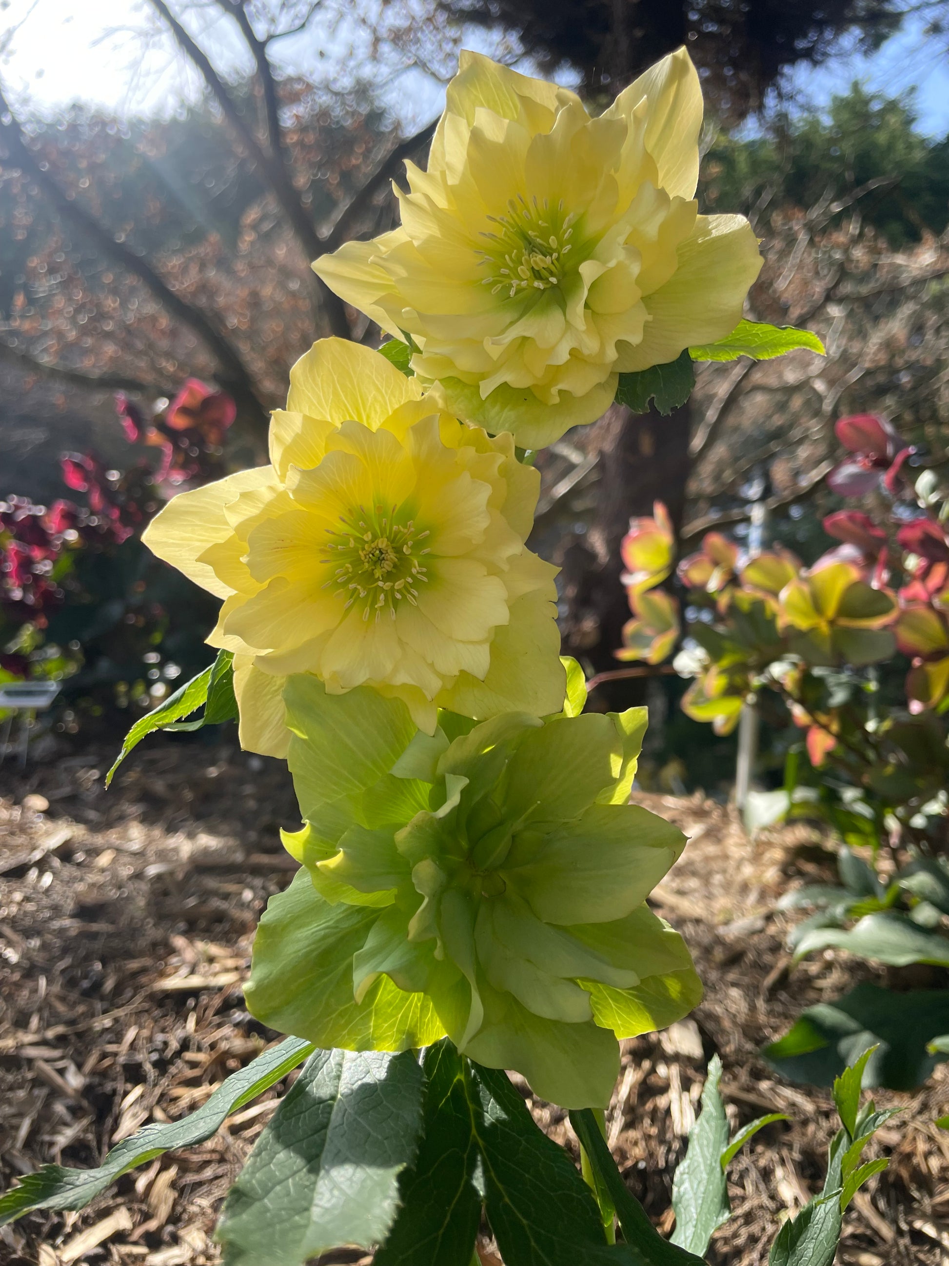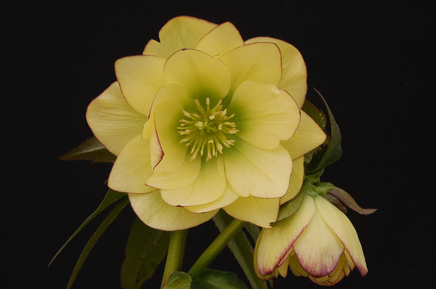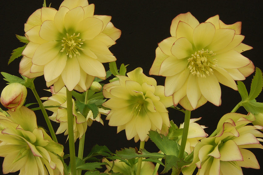 New from the famous Hellebore breeders Marietta and Ernie O'Byrne in the Eugene area of Oregon, this outstanding new plant has yellow with red picotee flowers with magenta streaks under. These plants are evergreen and will bloom in mid to late winter. Being long lived, they will adorn your garden for many years, expanding slightly every year. You can expect this variety to grow to 12 inches tall x 2 feet wide over time. They like a bit of shade. Hardy to zone 5.