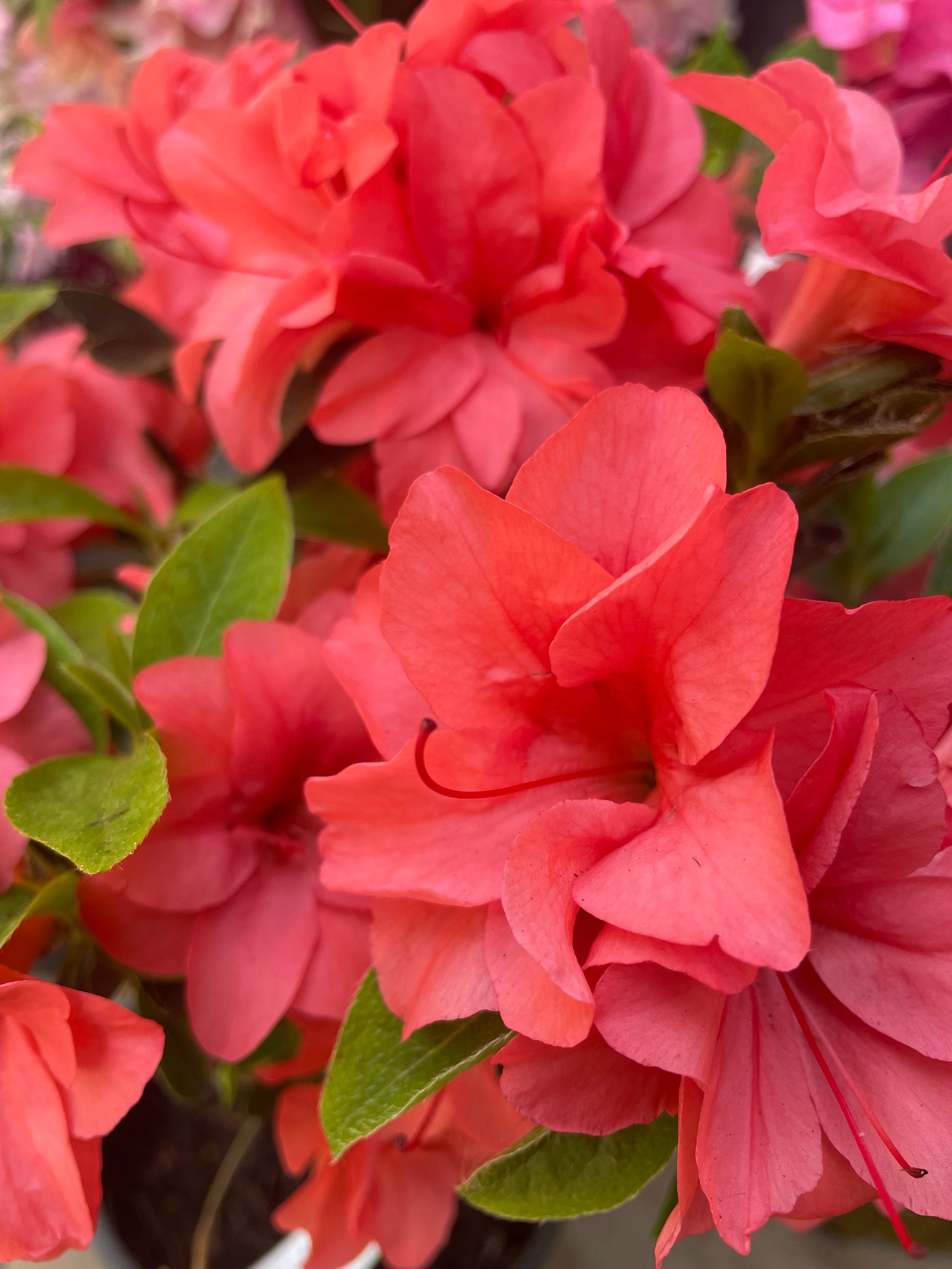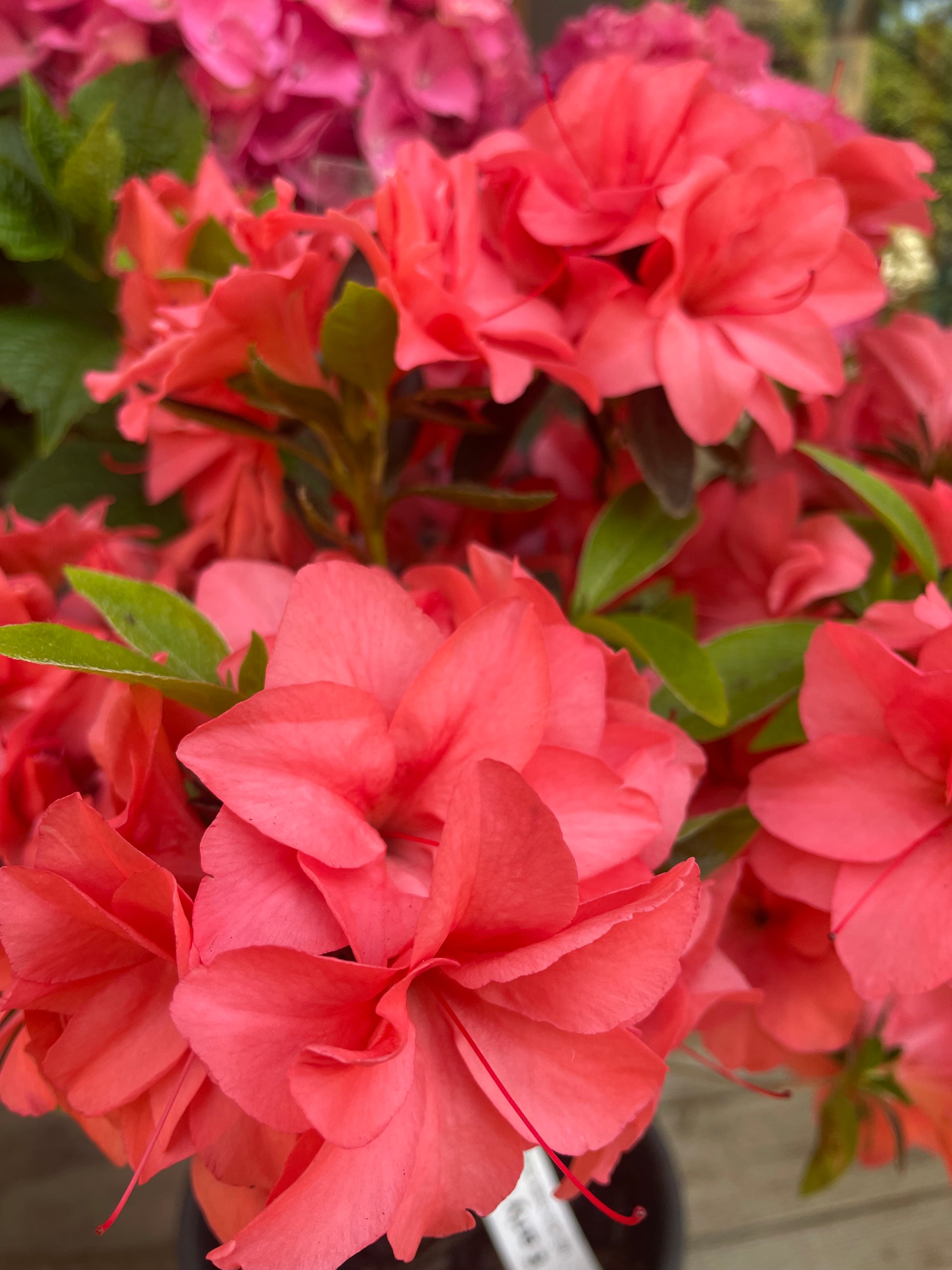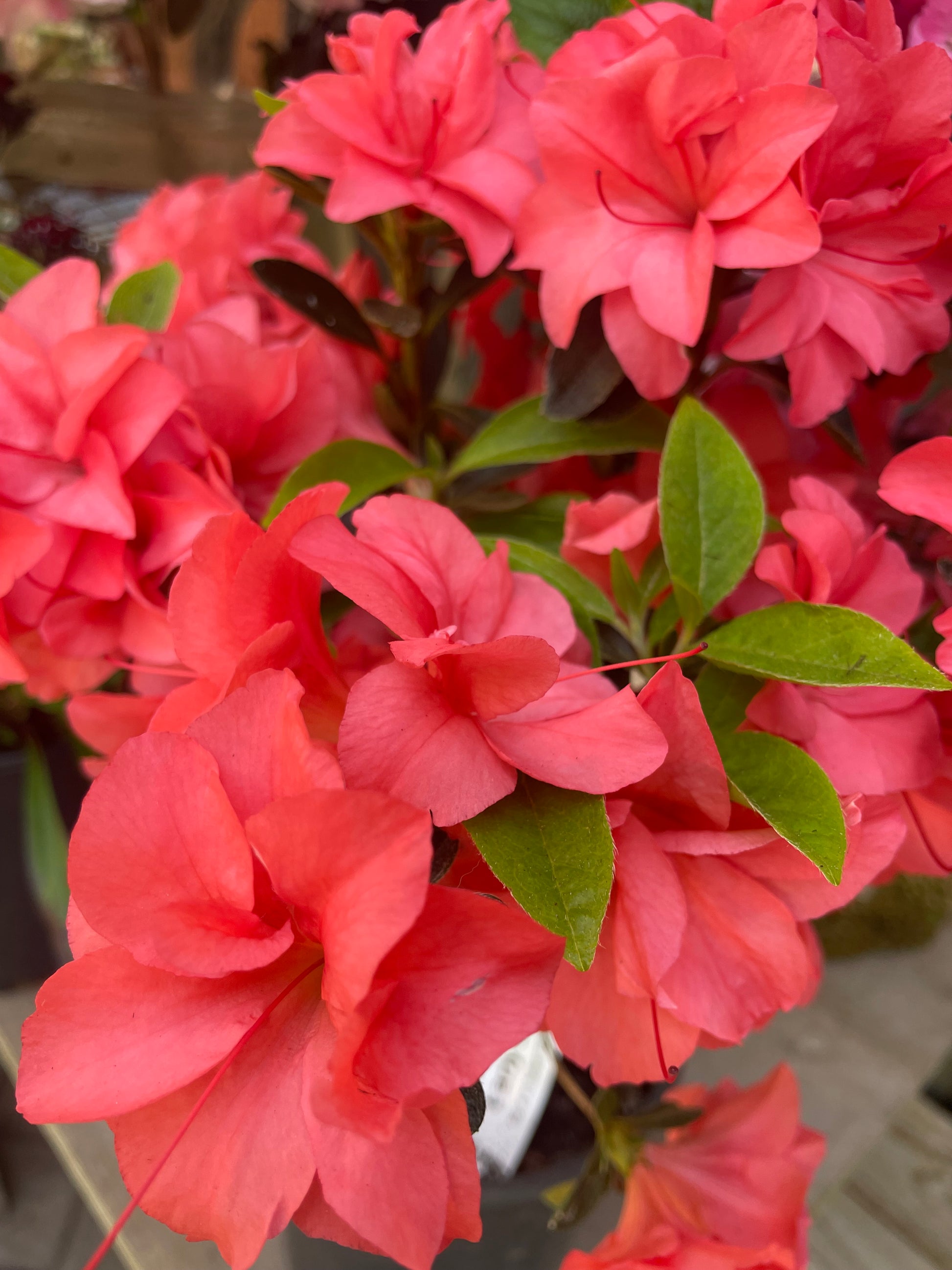 A semi-dwarf azalea that has light red-orange, semidouble to double, hose-in-hose flowers. One of the Robin Hill hybrids created in the 1940's. A moderate sized shrub and a reliable bloomer. One of the first to sell out here at the nursery due to its beautiful flowers.