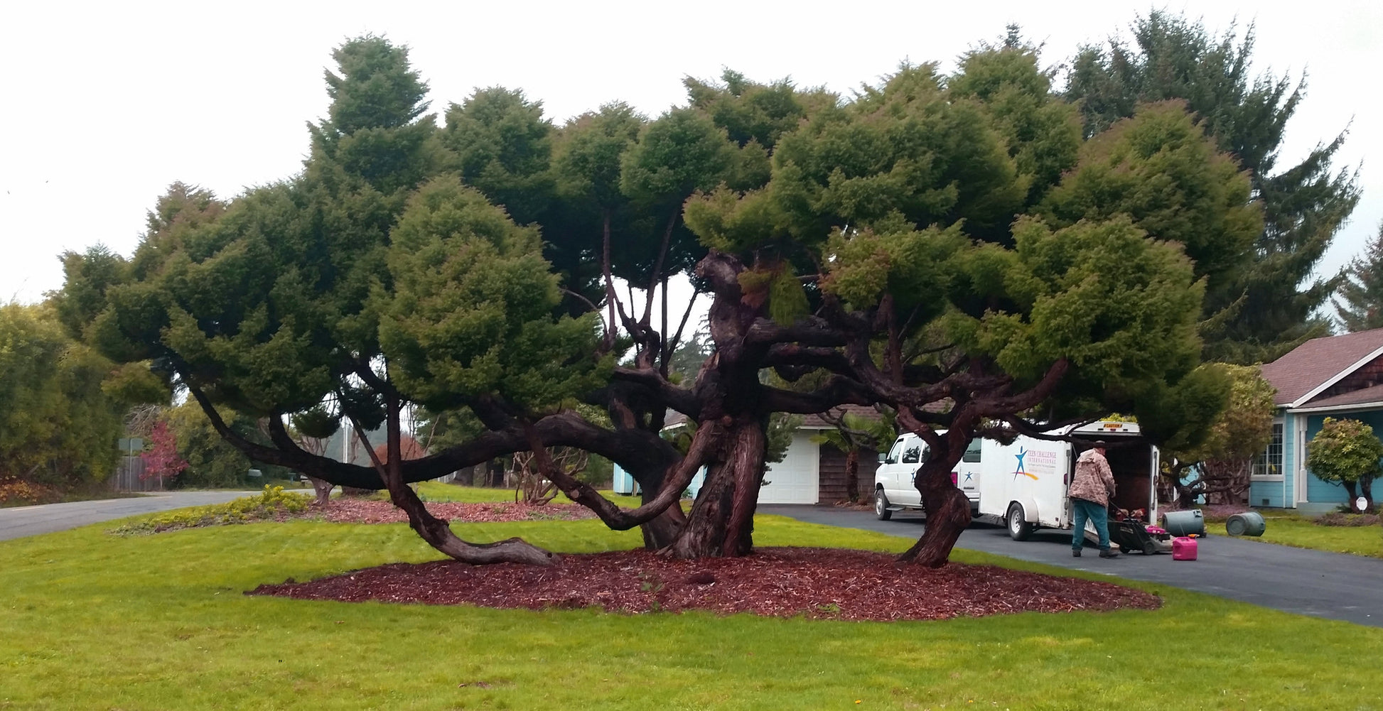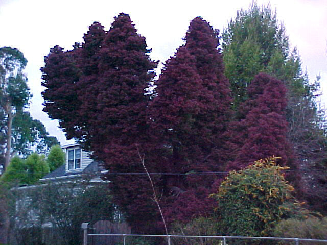 Called the Japanese Plume Cedar, this fast growing upright tree of juvenile foliage turns burgundy-purple in winter, but is more green in summer. This cultivar was given to Veitch Nursery in Holland by TH. Lobb in 1866. This tree makes an excellent hedge or windbreak as it is wind and salt tolerant. We like to plant this form and the lime green form 'Elegans Aurea' in group plantings for wonderful contrast.