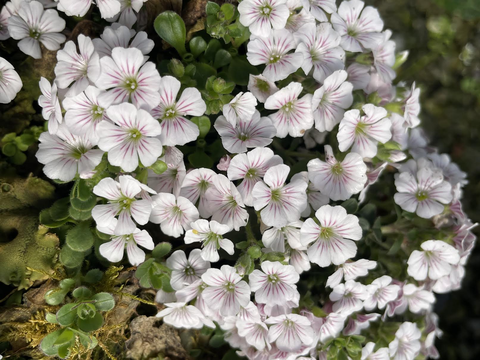 Gypsophila cerastioides, known as Clumping Baby’s Breath, features tight, clumping mounds of glossy, gray-green foliage covered with white star-shaped flowers. Attracts butterflies.