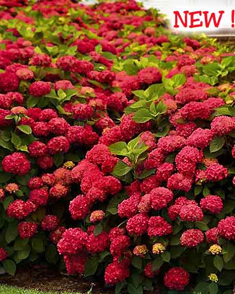 Unusual in the hydrangea world, this new patented red flowering hydrangea is truly a 'sensation'. The large, mophead flowers of light to medium red cover the plant on strong burgundy-red stems, making a fabulous show during summer and into fall. A rebloomer makes this one even more special, giving you color for a longer period of time. No pruning during the growing season to keep 'Red Sensation' tidy, it grows compact on its own. Great in containers on the deck, or in the shrub border on its own, or in mass plantings. Hydrangeas are not drought tolerant, and 'hydra' in its name is referring to its love of water. Hardy to zone 5.