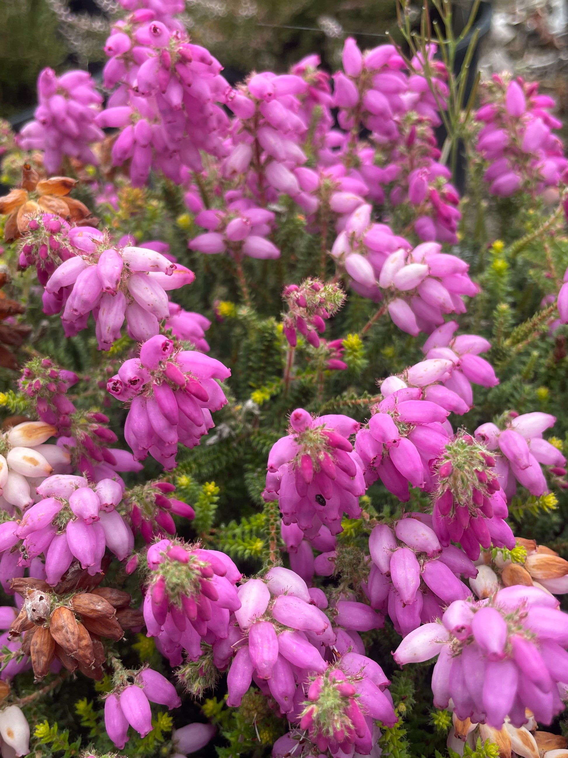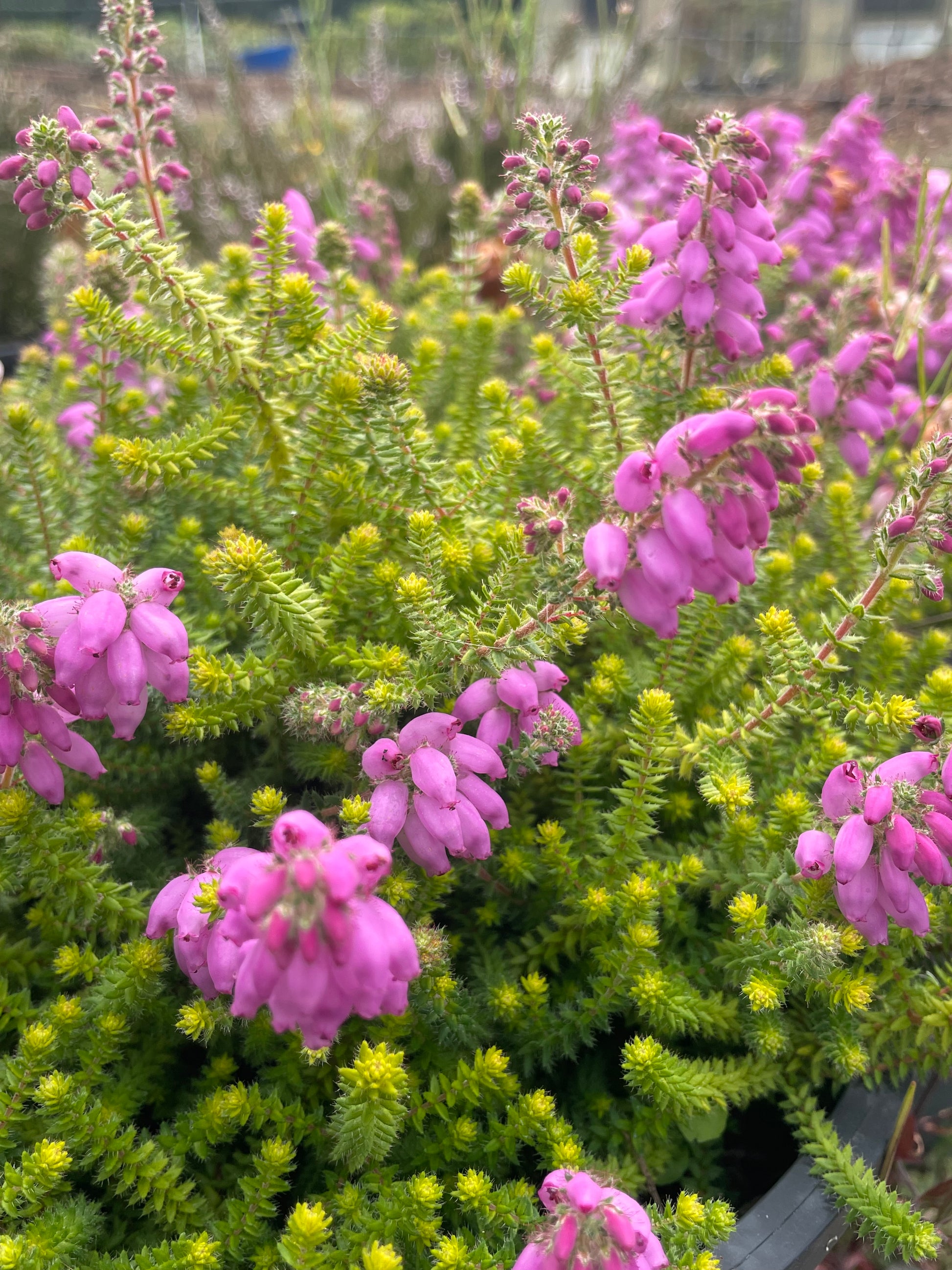 Large mauve bell-shaped flowers contrast nicely against rich green, fine needled foliage. The new growth of the foliage is a bright lemon-yellow, which is why the name. The plant will be 12" tall and 2-3 ft wide in time, and makes a nice rounded mound. Found on the shores of Lough Nacung, County Donegal, Ireland. Hardy to zone 7.