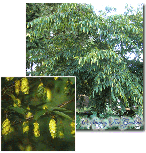 A slow growing, deciduous, small to medium-sized understory tree with very nice textured foliage. Used in Bonsai. The tree will develop a 'craggy' trunk in less time than most trees, thus why it is popular for Bonsai. Attractive ornamental fruiting 'catkins' are produced when the tree is more mature. These catkins with overlapping bracts resemble hops. Grows well in larger containers. This tree, over time will grow to 20-25 ft in the ground. Hardy to zone 4. This is one of my favorite species which Hillier describes as “A very beautiful...small tree or large shrub with prominently corrugated leaves and conspicuous fruiting catkins. Deciduous.