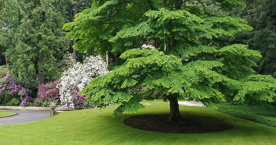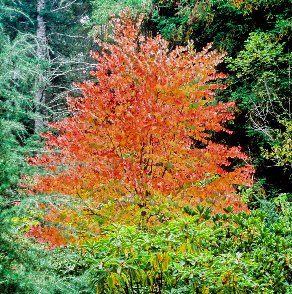 Japanese Katsura Tree. This hardy, medium-sized tree is distinctive. Opposing, heart-shaped leaves attract interest, changing from translucent bronze in spring, to summer green, to yellow and apricot-orange in autumn. Multi-trunked specimen trees with shaggy bark have eye-catching appeal. Throughout the seasons, it is among the most appealing of any hardy landscape tree. Considered to be a small tree, growing to 25-30 ft in 10 years. The late summer, early autumn foliage perfumes the air with fragrances like cinnamon, burnt sugar, or ripe apples. This happens when the foliage begins to turn red.