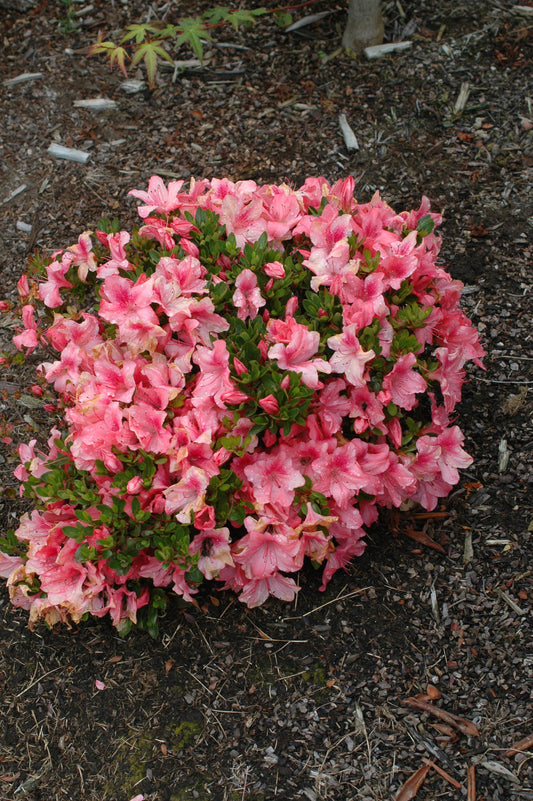 Lovely lemon-yellow flowers, occasionally double, cover this new low grower in April every year. The foliage is very dark green and bullate, adding to this "species looking" plant. This Premium rhododendron was created by crossing R. 'Creamy Chiffon' x R. degronianum ssp. yakushimanum, Exbury form. One attribute of R. 'Creamy Chiffon' is that it has semi-double, hose-in-hose flowers, and this has been partially passed on to R. 'Lemon Dream'. Most of the flowers are single, but perhaps as many as 1/3 are hose-in-hose, adding to the charm. Because of its 5 Star qualities, and because it is hard to find and propagate, we have placed this cultivar in the PREMIUM category.
