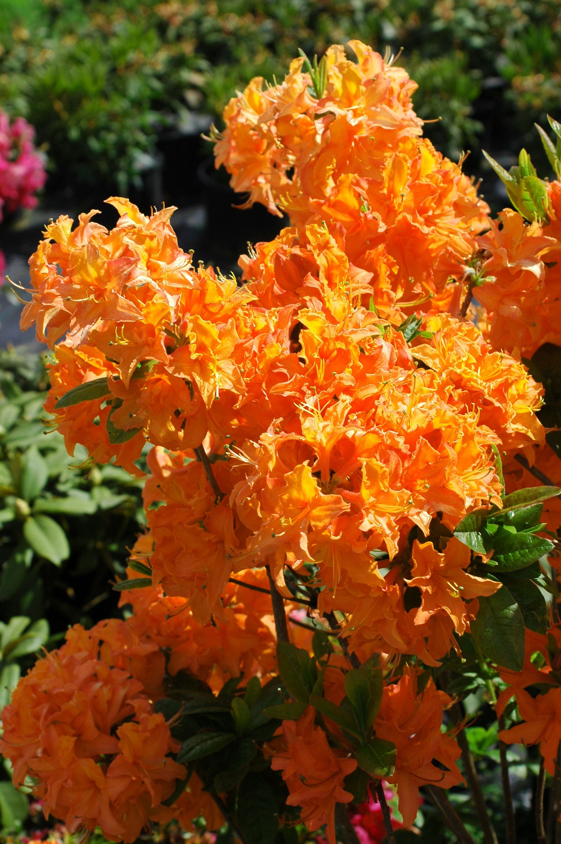 Medium upright grower with a delicate fragrance has showy, ball trusses of light orange flowers in May. There is a bright gold flare in the upper petal adding a glow. Red orange fall color.