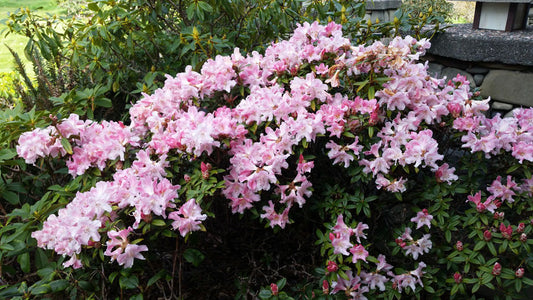 Powerful FRAGRANCE from huge 6" white flowers that have tints of pink and yellow. I put a large potted one of these in our rhododendron show one year and was asked to take it outside because the fragrance was too strong. I love the smell...like gardenias. The loose, open habit is perfect for use as a cascade or to train up a trellis, creating a wall of fragrance. Heat tolerant. The bark exfoliates and has a "manzanita" look...rich reds and browns and silver hues. Plant on a raised hill or above a retaining wall and let this plant create wonderful interest and scented air.