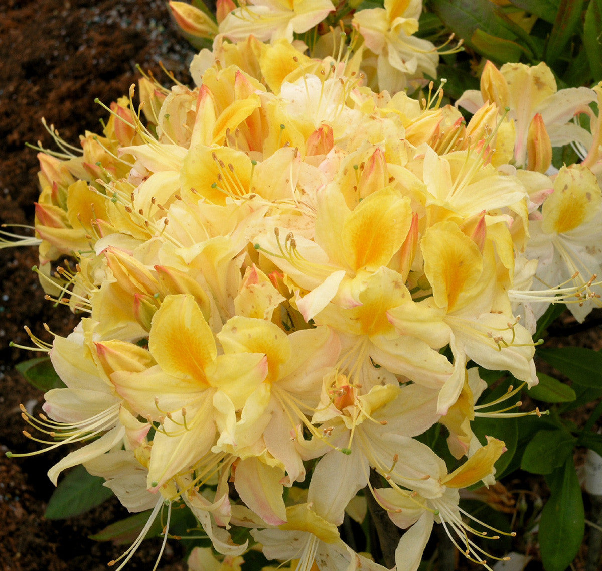 Medium sized shrub with white flowers that have a bright yellow flare in the upper petal. Developed by the University of Minnesota, this cultivar is super hardy to -30 F. The leaves are resistant to mildew that is present in the fall, so the foliage will turn red and burgundy for an autumn show.