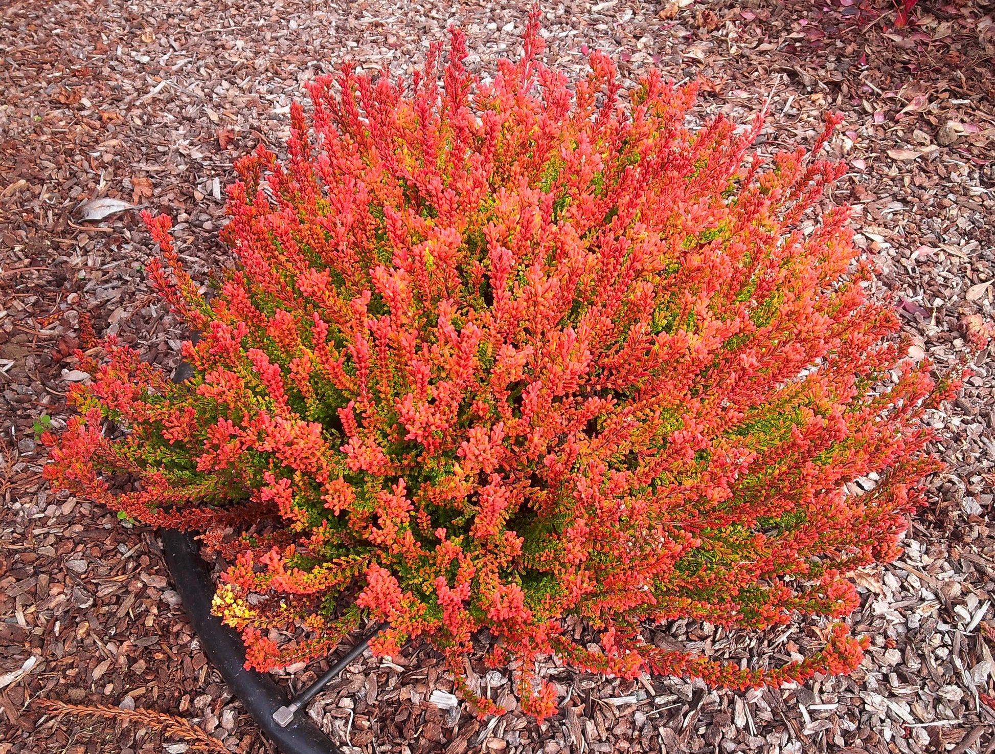 Also known as 'Fraser's Old Gold', this interesting scotch heather has a wide range of colors throughout the seasons. In summer it is a bright yellow and has lavender flowers in July through August, but in winter the foliage turns an incredible, intense orange red. Similar to 'Firefly' but more on the orange side. A planting with both 'Firefly' and 'Old Gold' would be a stunning combination.