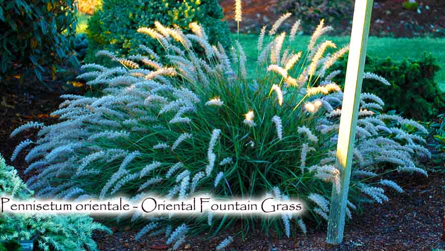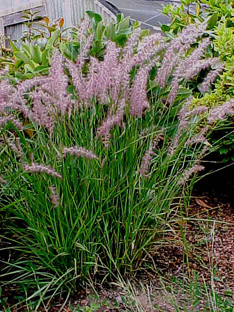 A very popular ornamental grass that loves lots of sun and well-drained soil. This grass is very attractive in bloom when, in mid summer the compact plant produces many fuzzy pink bottlebrush like flowers. The flowers age to a pale almond color by early fall. Useful accent to go with cut flowers.