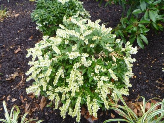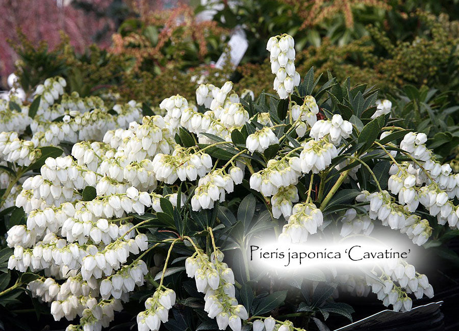 Desirable, as this cultivar of Japanese Andromeda is the most compact, so can fit into smaller spaces. Commonly called the Dwarf Lily of the Valley shrub, this plant has several seasons of interest. In winter, the pale green flower buds contrast well with its dark green foliage. Then, in mid-March it is almost completely covered in creamy-white bell shaped flowers, providing a source of nectar for early-season pollinators such as mason bees. Useful as a beautiful low informal hedge and can be trimmed to stay in the shape you prefer. Also, when planted in front of taller shrubs the plant will hide any legginess. 'Cavatine' always receives the highest ratings when listed in publications. Will grow for several years successfully in a container. Hardy to zone 6.