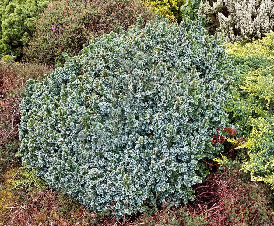 People walk right by the little Pimoko in it's pot but they all stop and stare at our large specimen in the garden. Pimoko, like all worthwhile pursuits, takes time. Each year Pimoko grows just under 2 inches. It's short blue and green needles will glitter in the sun and your wonder and delight will deepen with every year. It has been that way for us here at Singing Tree Gardens. Watching this beautiful little Serbian Spruce grow into our garden has been such a joy. In ten years time it grows just about 2 feet tall by 4 ft wide. The wider it gets, the more it sparkles. Give it sun and plant it with reds, gold and/or deep greens and join me on this extraordinary journey.