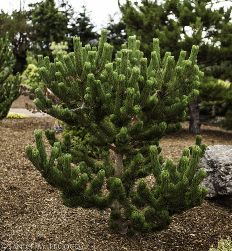 Highly sculptural, this new and unique form of Austrian black pine has asymmetrical branching where the glossy, dark-green needles are held somewhat tightly against the branches. 'Oregon Green' can grow to be 10 ft tall and 6 ft wide in 10 years. This cultivar originated as a seedling selected in the early 1990s at Van Meter and Son Nursery, Boring, Oregon, USA. The cultivars, Pinus nigra 'Oregon Jade' and 'Select Green' are considered by be synonyms of this plant. This variety is useful to impart a Japanese flair to your garden space without blocking a desired view.