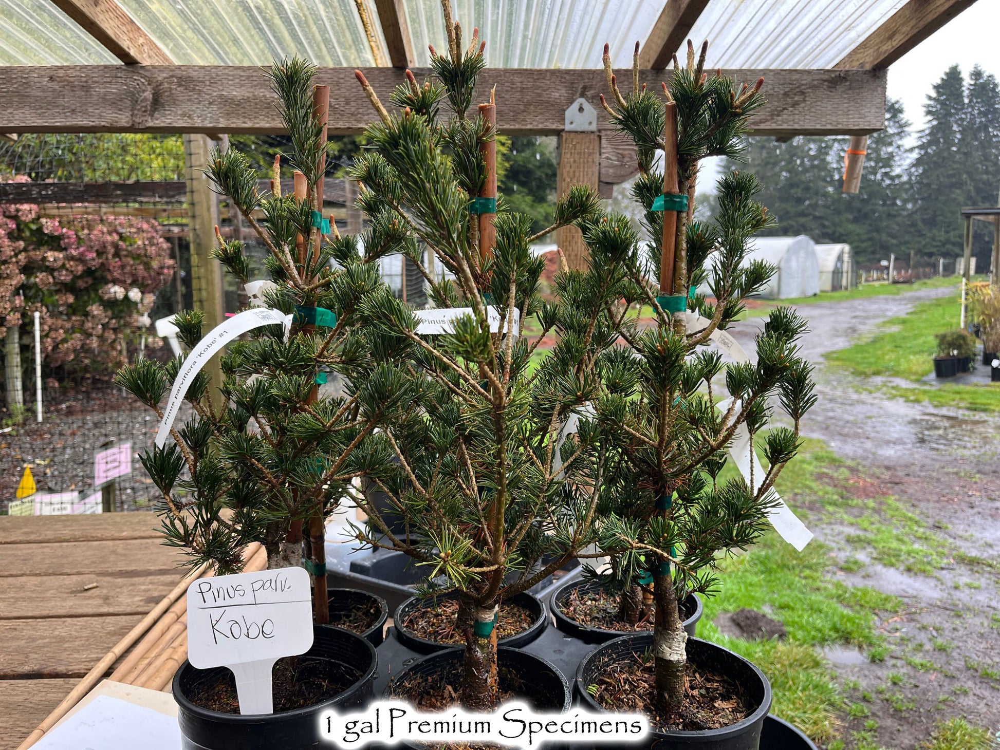 A dwarf variety of Japanese White Pine. Short, straight, thick needles no longer than 1/2 to 3/4 in length and Blue green. Plant grows about 4-6 inches a year. Mature at 8 ft.. Introduced Kobe Arboretum in Tokyo, Japan. Often used in bonsai, as the photo shows. Just to be totally clear, we offering for sale a 1 gallon tree that is 2-3 years old. The bonsai pictured is more than 20 years old, and is shown as an example of what can be created.