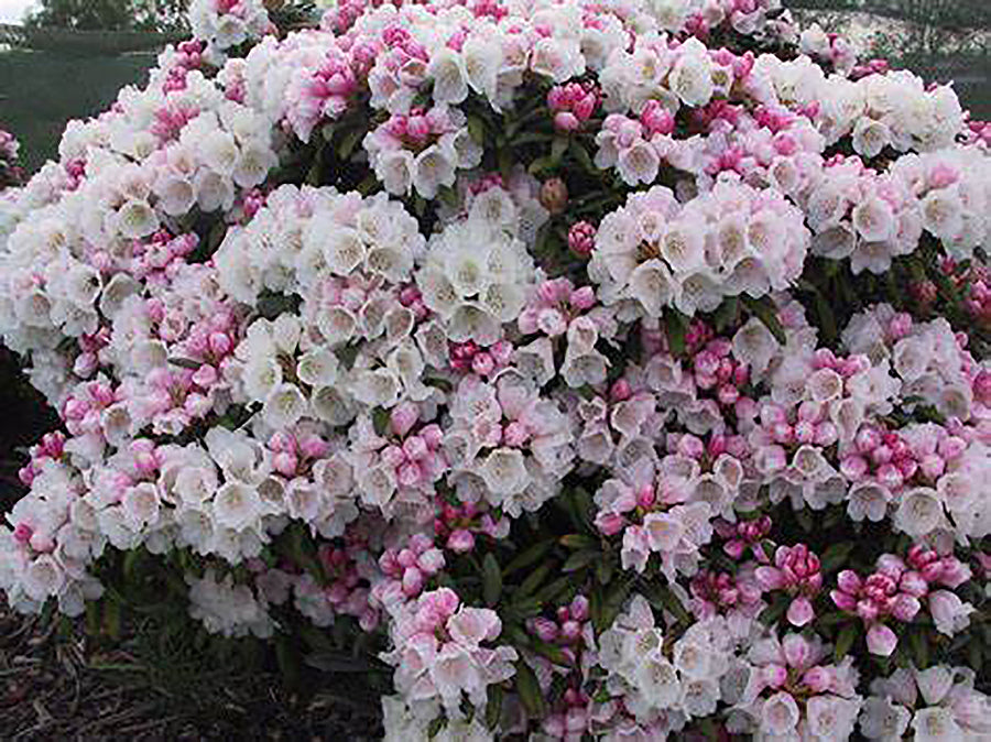 Here is a form of the true species R. degronianum ssp. yakushimanum that was selected by Exbury Gardens on The Rothschild Estate, Hampshire , England in the UK. Similar to the clone 'Koichiro Wada' that came from Japan, this plant will grow slowly to 2.5 ft tall and wide in 10 years. The foliage is very dark green, shiny, with the undersides exhibiting a tan colored, suede-like covering called indumentum. The flowers open pink, then fade to white, and usually completely cover the shrub in April. Our 1 gallon size plants are small due to their slow growth rate, but guaranteed to be true to form. Hardy to -25 deg F.