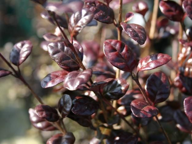 New Zealand Red Myrtle. The reddish-pink foliage becomes blood-red as the weather cools and is excellent for floral arrangements. A fine hedge, background shrub or patio container subject. Evergreen. One of the very few plants that holds its red foliage all year round. Somewhat tender. Zone 9.
