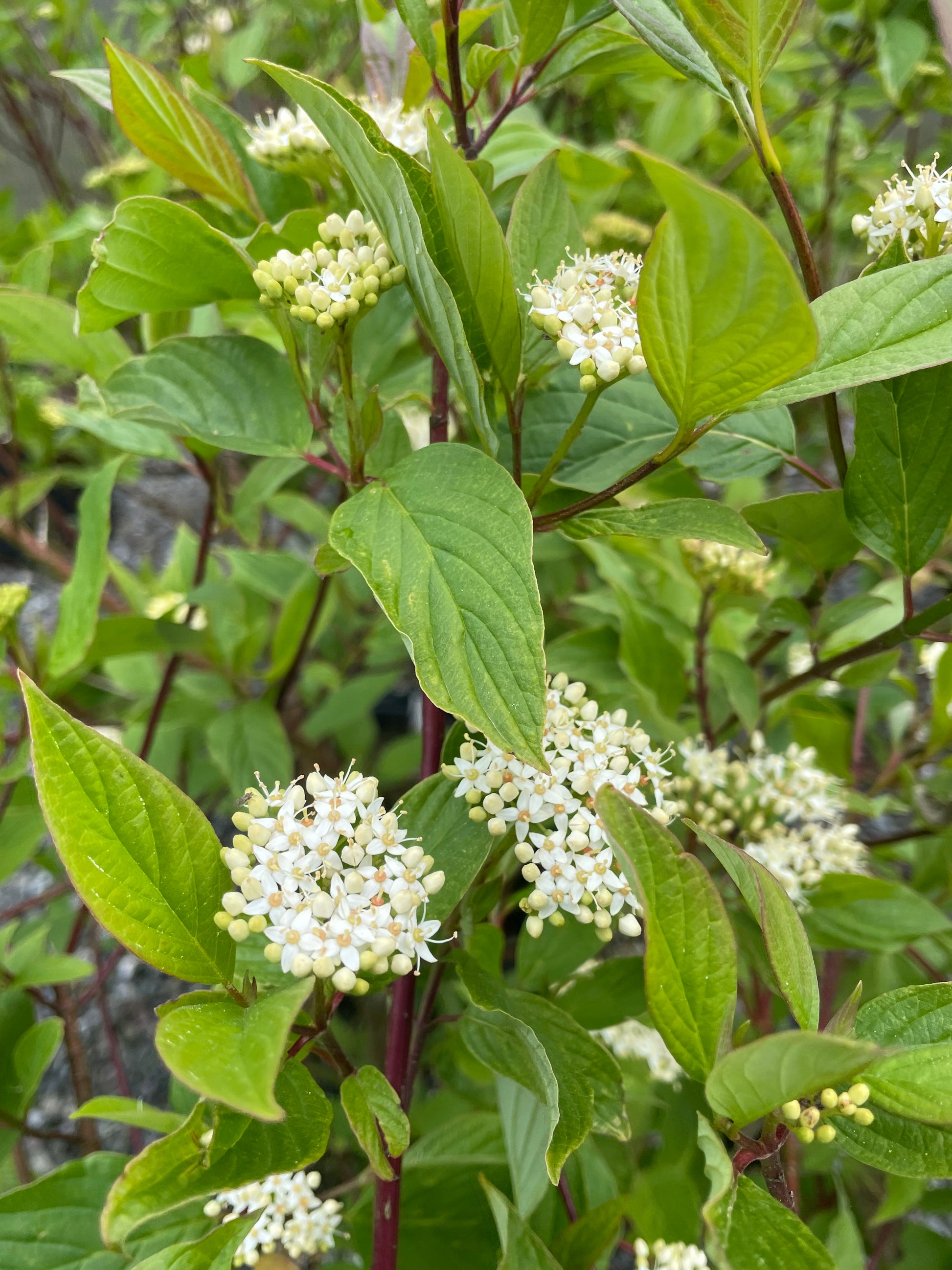 Decorate your winter garden with this fast growing, multi-stemmed, deciduous shrub that has brilliant red stems. In summer, the shrub is covered with its lush medium green foliage. Also known as the red osier dogwood, you can expect it to grow to be 6-9 feet tall and even wider in 10 years. This cultivar is successful growing in wet, swampy areas, which makes it useful where other plants cannot survive. The foliage fall color is red-orange, then eventually turning purple before dropping. Tiny, fragrant, white flowers appear in flat-topped clusters in spring, adding interest. Fruit is quite attractive to birds and is generally considered to have as much if not more ornamental interest than the flowers.