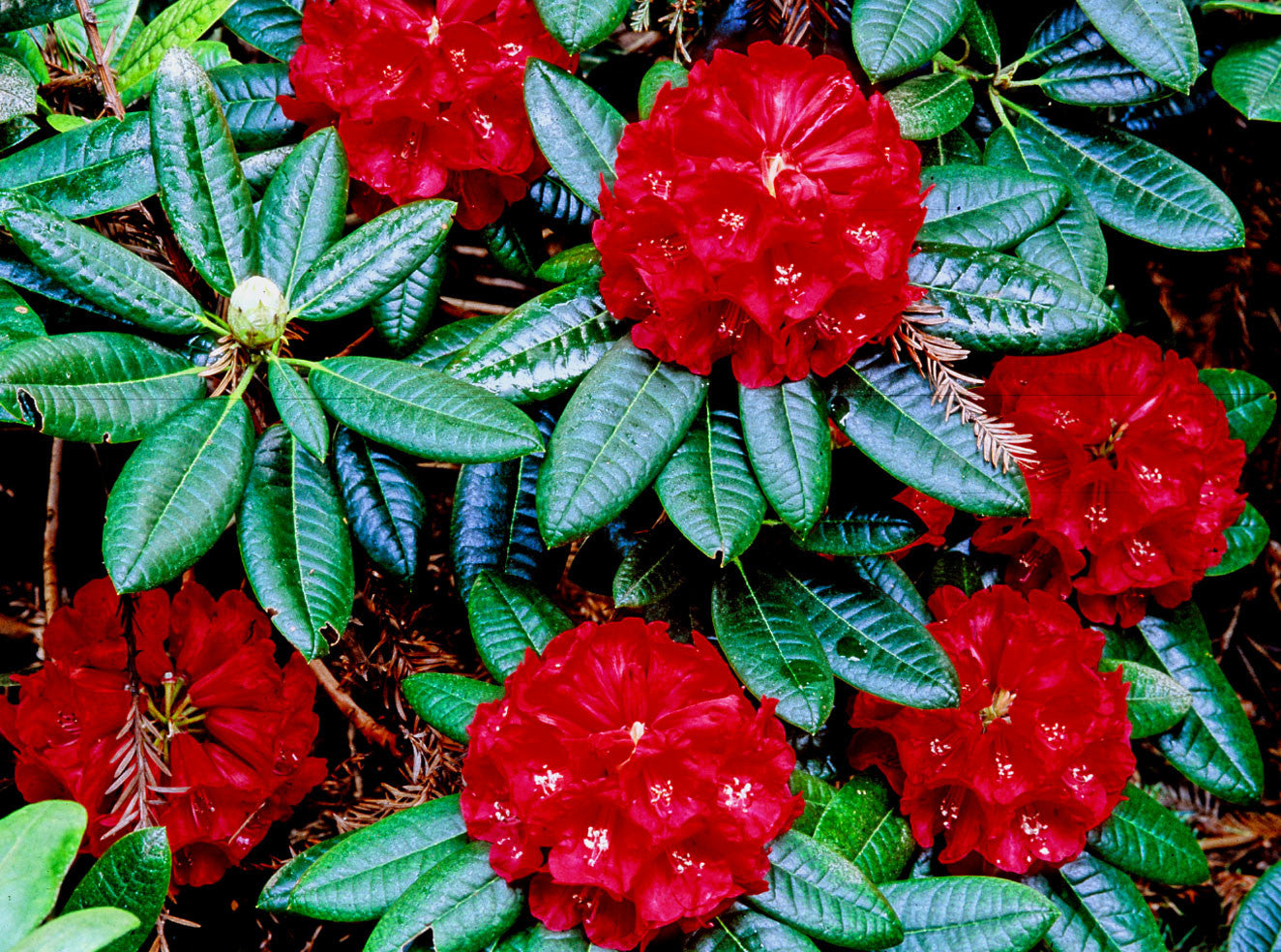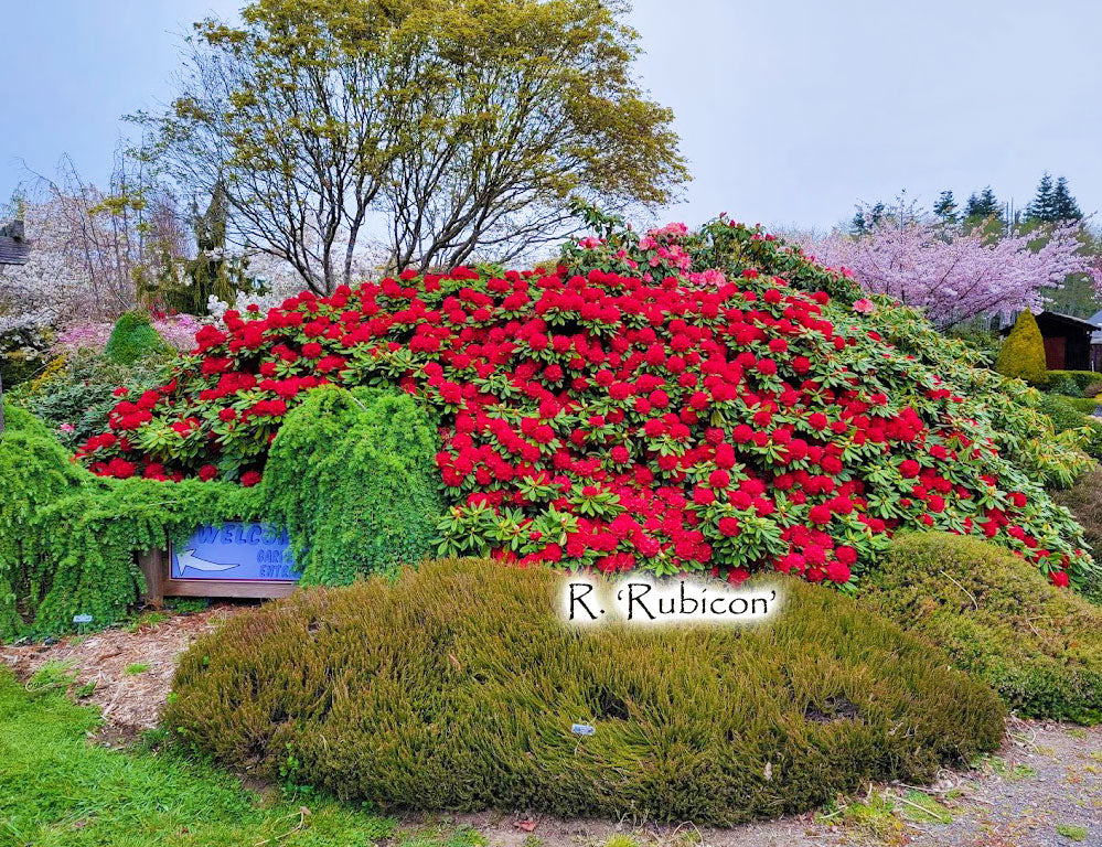 I always recommend to my customers, "If you only buy one rhododendron, buy Rubicon". The foliage is very dark and textured, and the plant will only grow to be approx. 4 ft. in 10 years. The flowers are blood red and seem to open throughout the blooming season. Wow! Note: this plant can grow in full sun on the coastal areas with cool temperatures. Those with hot summers will have to provide some shade.
